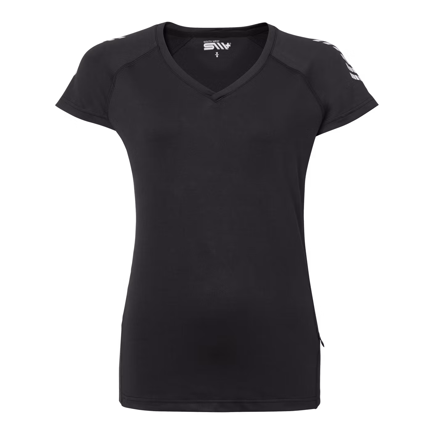 V-ringad träningst-shirt i figurnära dampassform med meshpartier för ventilation i sidor och övre rygg. Reflextryck på ärmar för ökad synlighet i mörker. Ficka i vänster nederkant för praktisk förvaring.